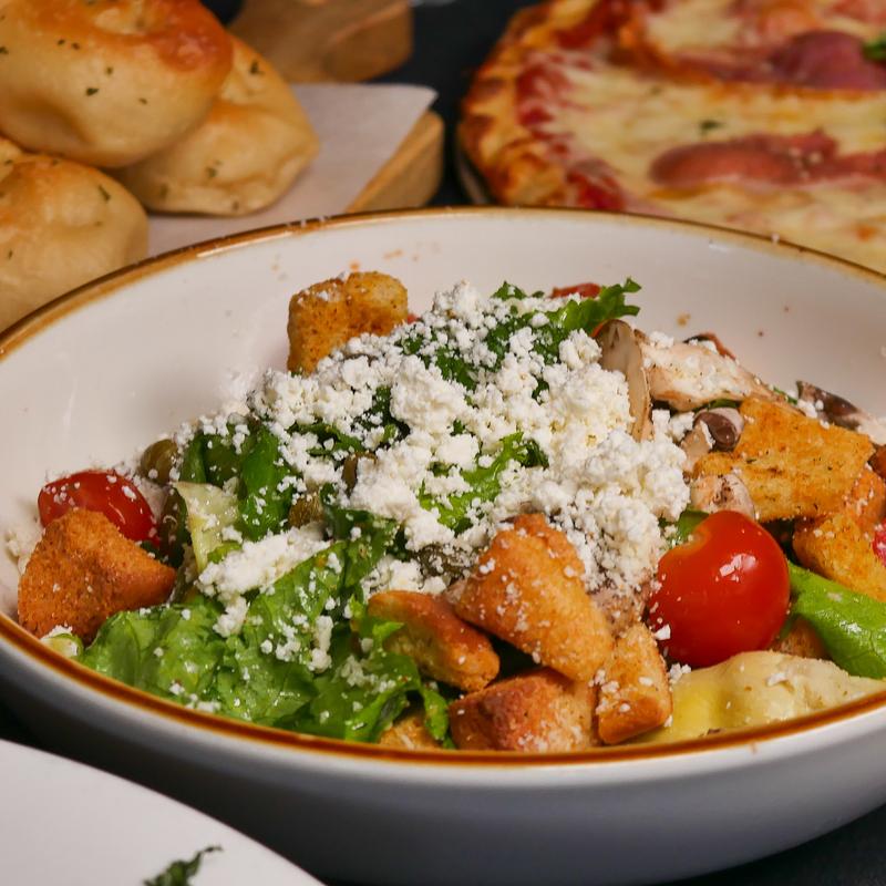 Add Chicken: +$5, Shrimp: +$7, Salmon:+$10 | Lettuce, tomatoes, olives, mushrooms, green onions, croutons, artichoke, feta cheese w/ Noli's Dressing